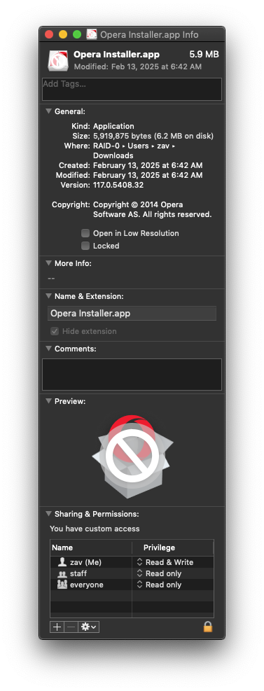 - OperaSetup.zip is downloaded and unpacks into Opera Installer.app, version 117.0.5408.32