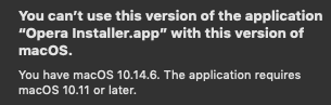 Can't install Opera on Mojave 10.14.6 but 10.11 is the minumum OS.