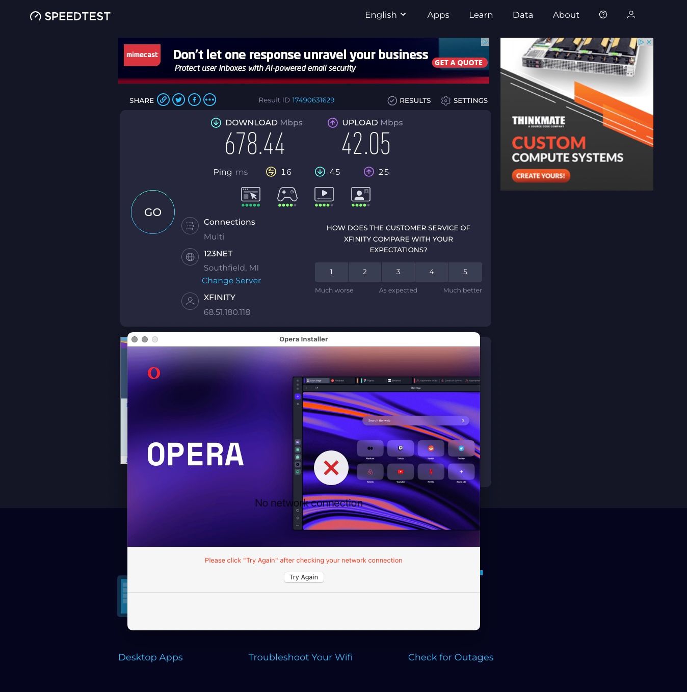 Ran Ookla speedtest immediately before running installer. Passed (see screenshot)