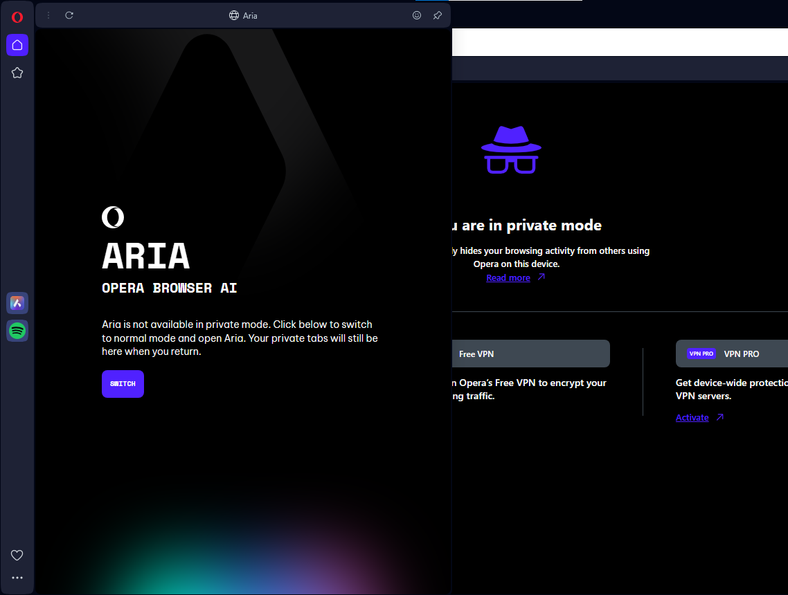 Why does it work privately just fine on mobile but not desktop? It's easier to use Aria on desktop, but I want to be able to talk to Aria privately without it saving the conversation or me opening a normal window, while I still have the ease of access on computer.I couldn't find anybody mentioning this so I guess I'll bring it up?