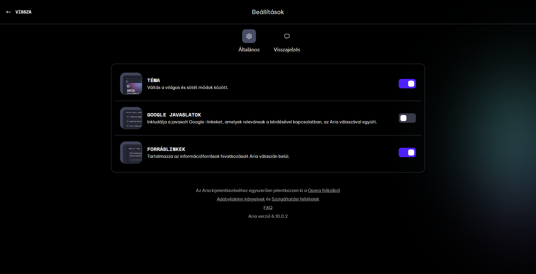 The writing icon has disappeared from Aria's menu.